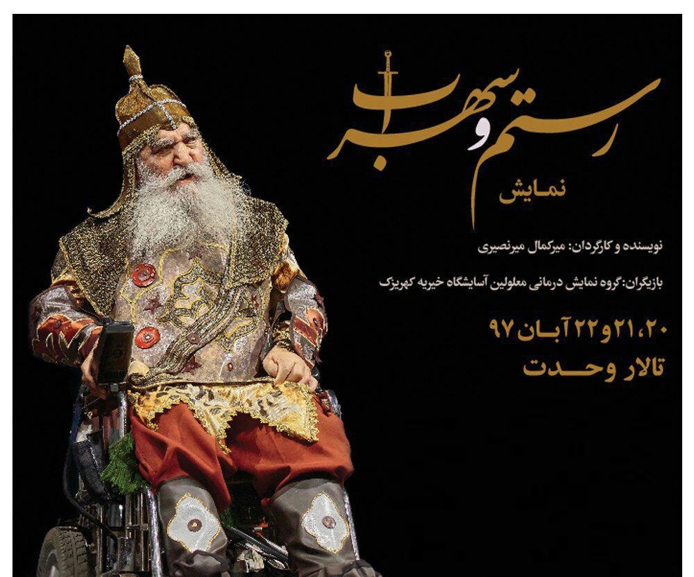 به گزارش ایران سپید به نقل از باشگاه خبرنگاران میرکمال میرنصیری کارگردان نمایش «رستم و سهراب» در خصوص این نمایش که توسط معلولان جسمی اجرا میشود، گفت:نمایش «رستم و سهراب» حاصل ۹ سال تمرین گروه است البته بچههای گروه ۱۸ سال است که تحت نمایش درمانی هستند یعنی ما از سال ۷۹ بحث نمایش درمانی را در آسایشگاه کهریزک با آنها شروع کردیم. در نمایش درمانی هدف صرفا اجرای نمایش نیست بلکه نمایش خود وسیلهای است تا آنها خود باوری، اعتماد به نفس، کاهش فشار روحی و روانی و زندگی با یکدیگر را تمرین کنند. انسانهایی که یک روز سالم و براثر اتفاقات و حوادث سلامتی خود را از دست دادهاند و به دلیل شرایط، توانایی ماندن در محیط خانواده را نداشته، به آسایگاه سپرده میشوند طبیعی است که یک تلاطم روحی و روانی در آنها ایجاد و یا افسرده و پرخاشگر و بی انگیزه می شوند به این ترتیب از نمایش درمانی استفاده کنیم تا این عزیزان را به جامعه و زندگی برگردانیم.