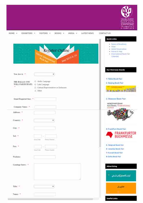 ثبت نام ناشران خارجی منحصر به این سامانه نیست و علاوه بر این ناشران بین المللی می توانند تقاضای ثبت نام خود را به صورت فرمهای پی دی اف انتراکتیو نیز که دراین سامانه قراردارد ارسال کنند. این سامانه توسط موسسه نمایشگاههای فرهنگی ایران راه اندازی شده و به آدرس www.tibf.ir/en قابل دسترسی است.